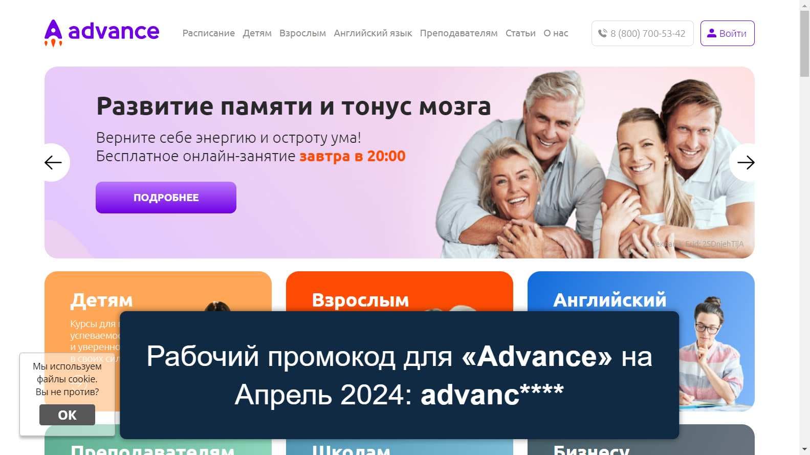 Больше специальных промокодов для «Advance» на Апрель 2024 на Сайте
