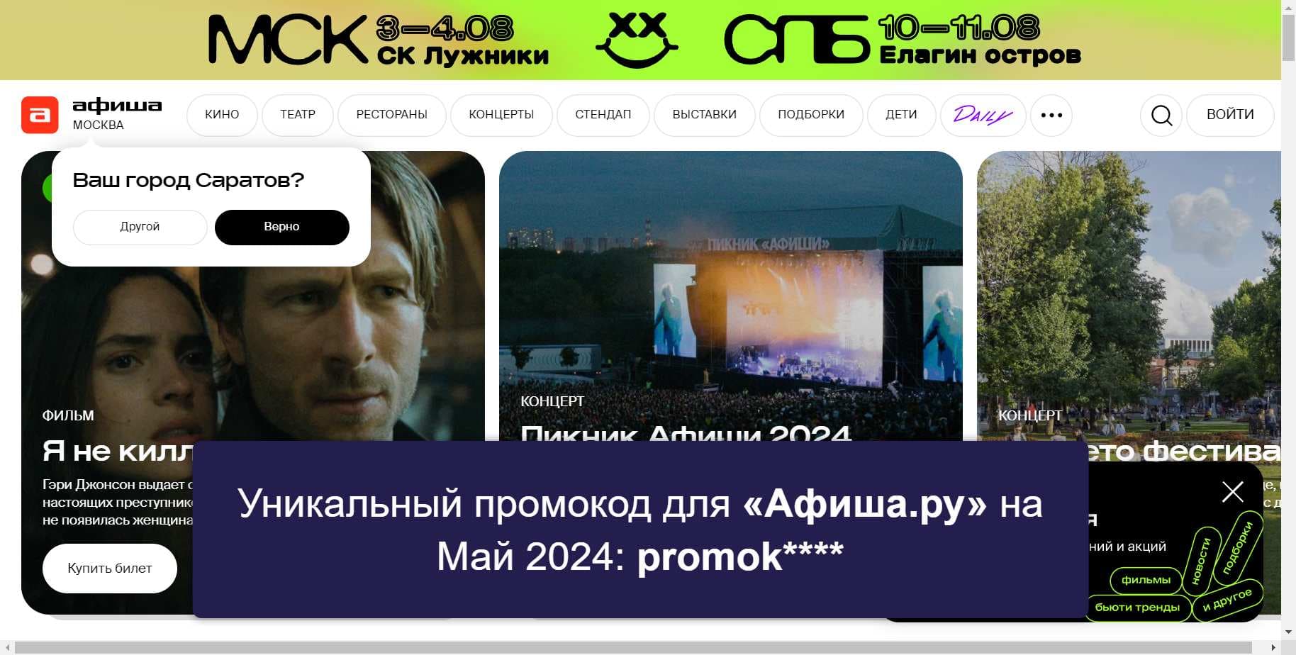 Промокоды «Афиша.ру» на Май 2024