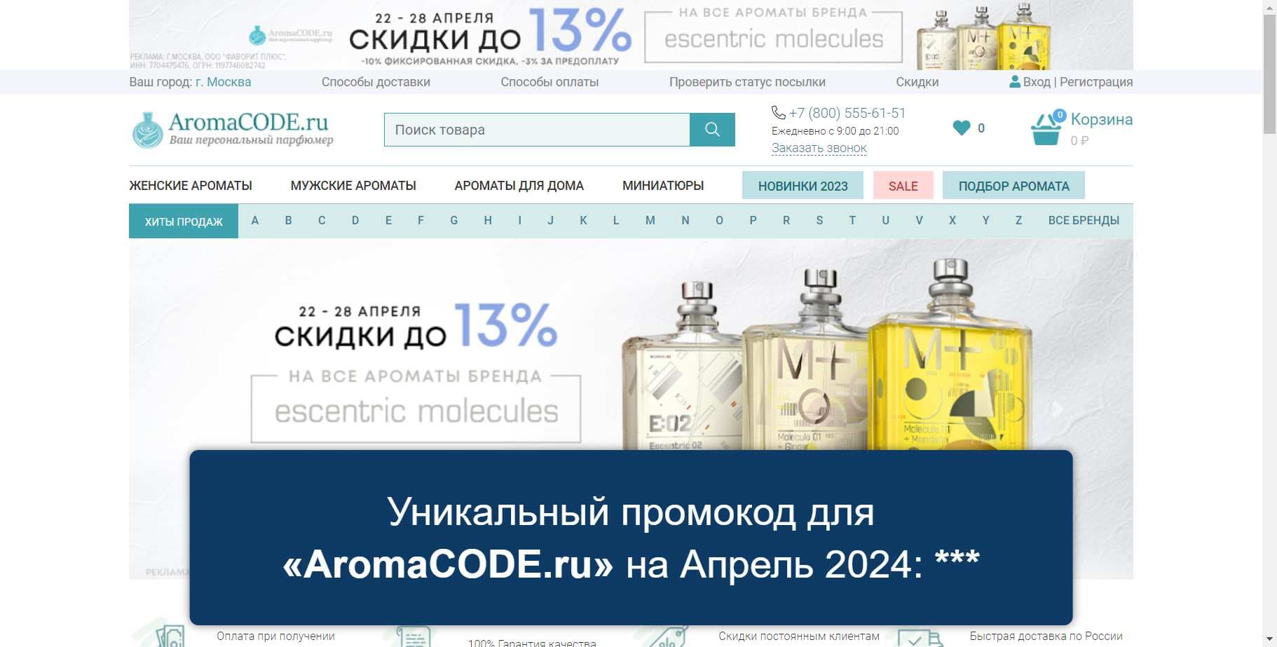 Еще больше специальных промокодов для «AromaCODE.ru» на Апрель 2024 на Сайте