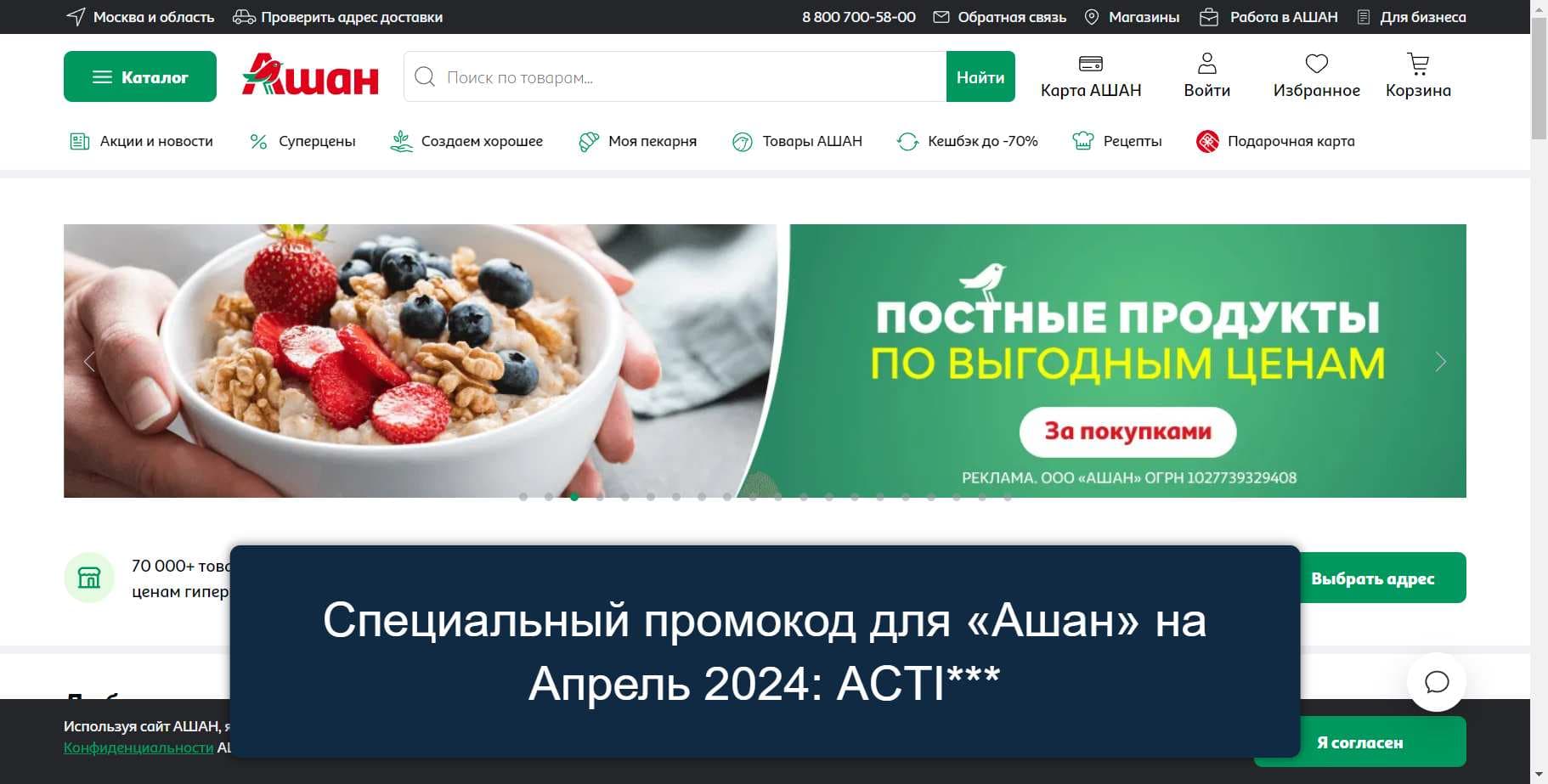 Еще больше секретных промокодов для «Ашан» на Апрель 2024 на Сайте