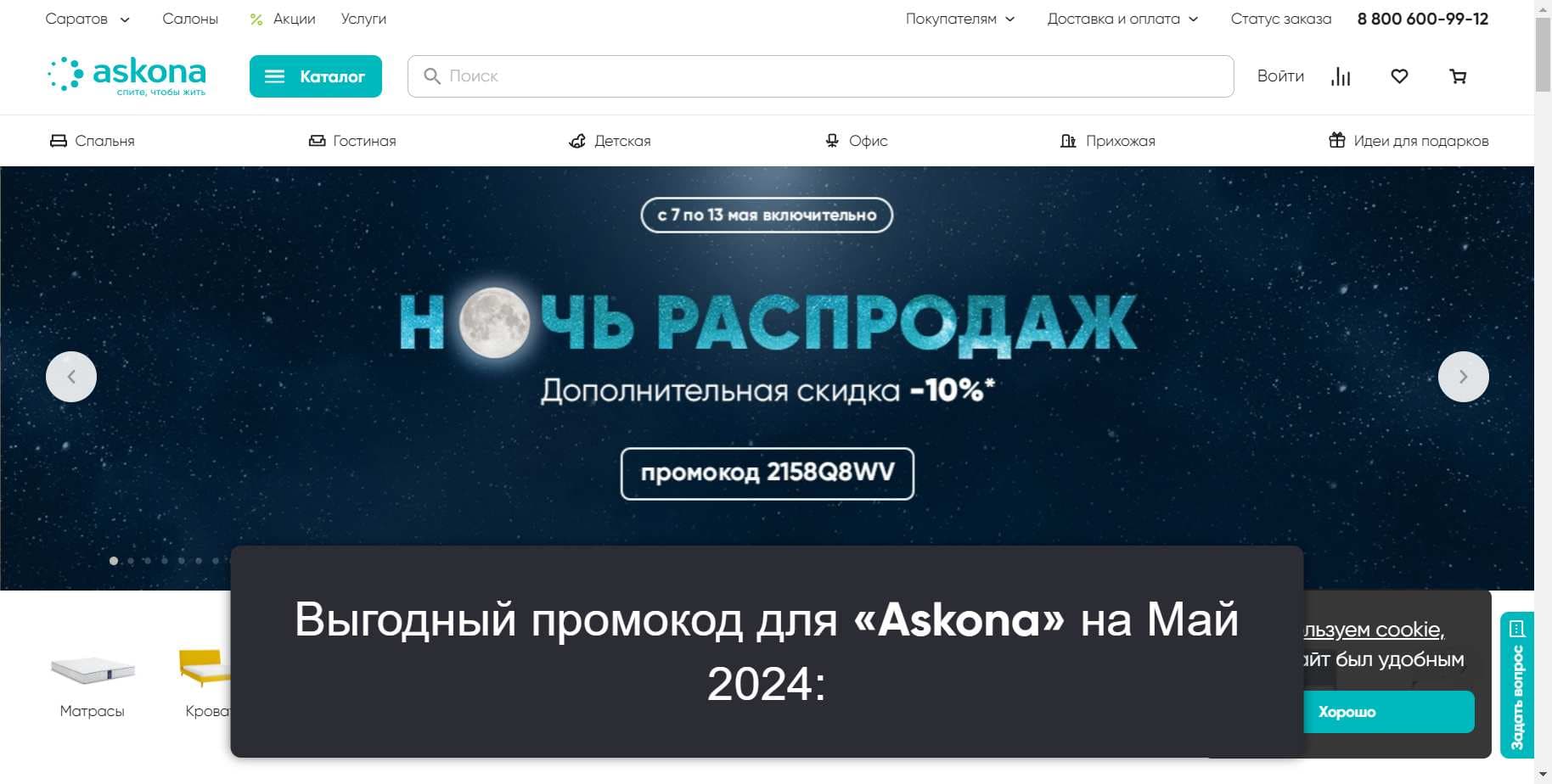 Больше секретных промокодов для «Askona» на Май 2024 на Сайте