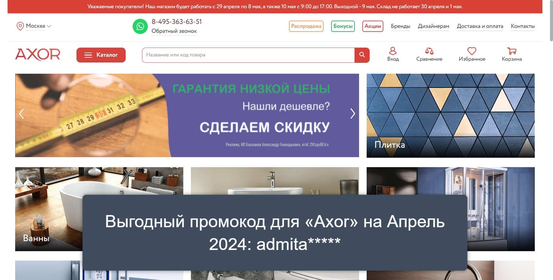 Еще больше рабочих промокодов для «Axor» на Апрель 2024 на Сайте