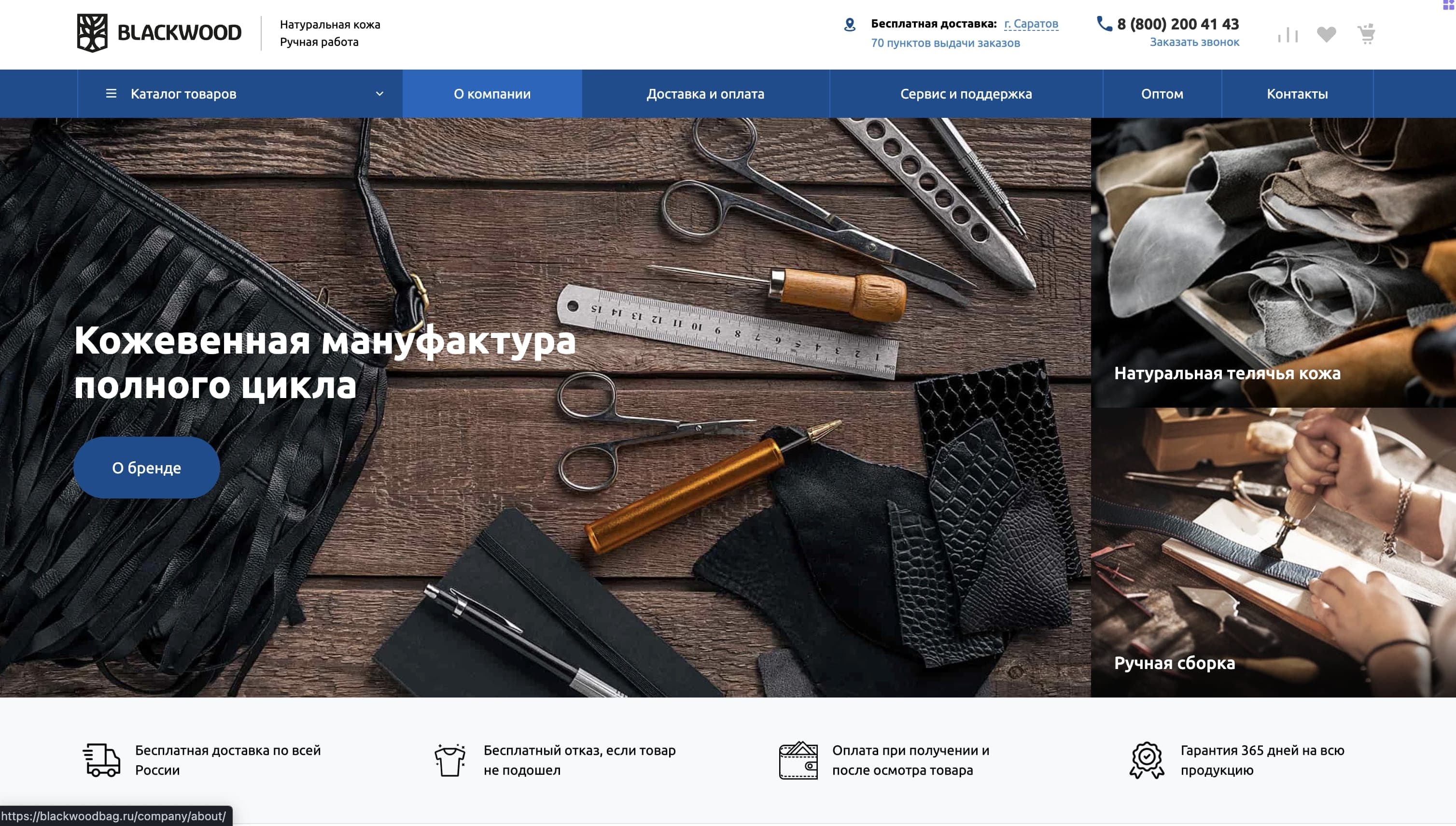 «Blackwood» — это интернет-магазин, специализирующийся на продаже сумок и рюкзаков из натуральной кожи в Москве. Бренд известен своим вниманием к качеству и использует только высококачественные материалы для изготовления своих продуктов. Благодаря такому подходу, изделия отличаются изысканным дизайном и долгим сроком службы.