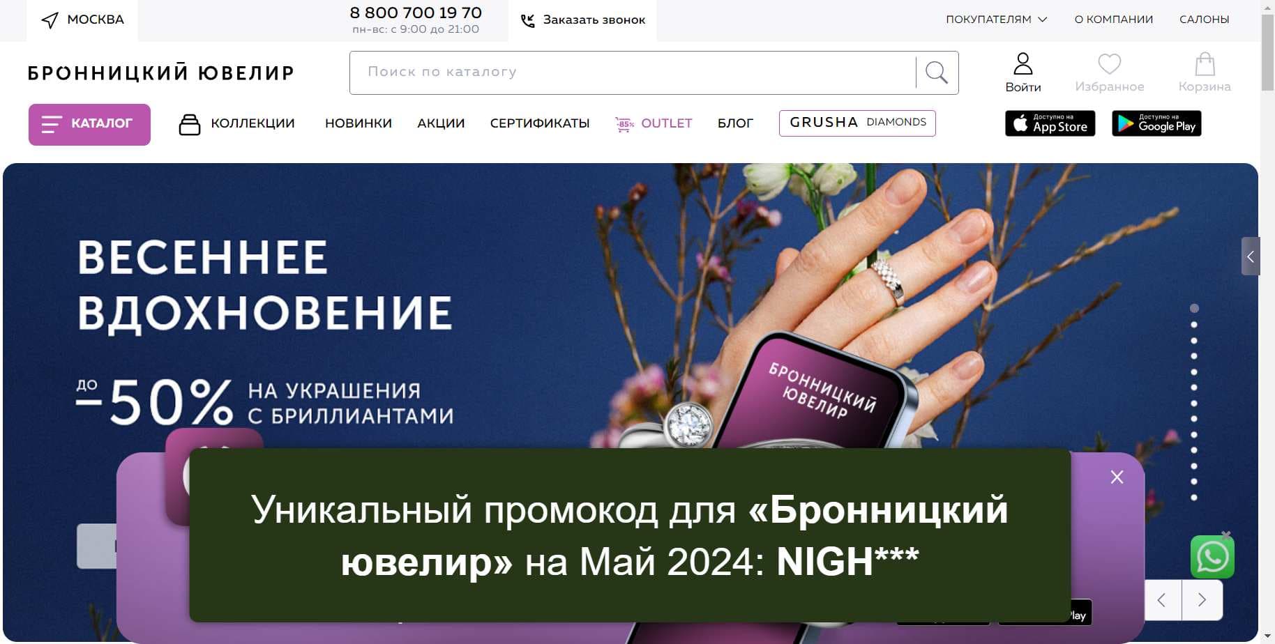 Еще больше уникальных промокодов для «Бронницкий ювелир» на Май 2024 на Сайте
