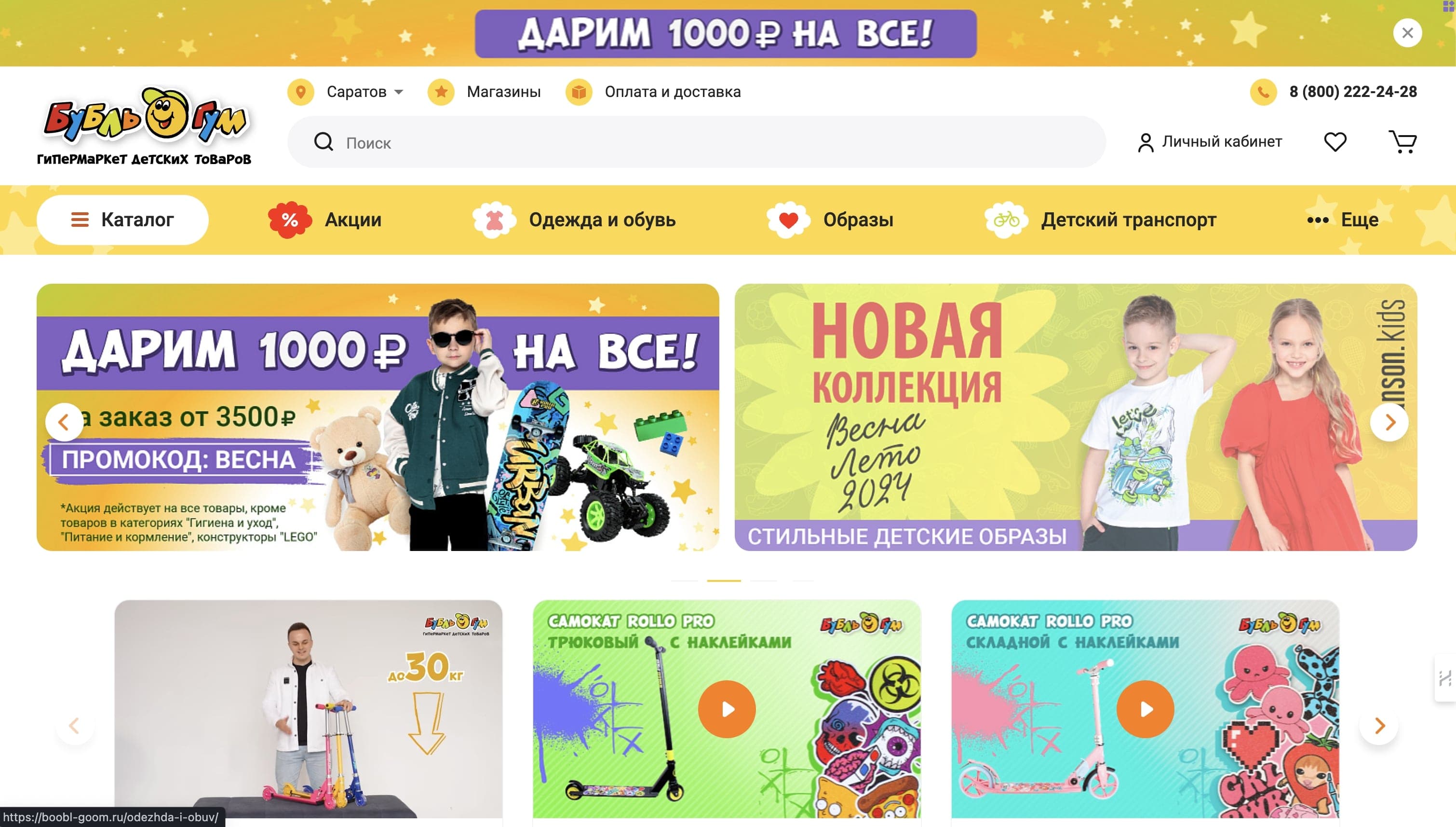 - САМОКАТ - Скидка 1000 рублей на детские товары из каталога по коду! Действует по этой ссылке