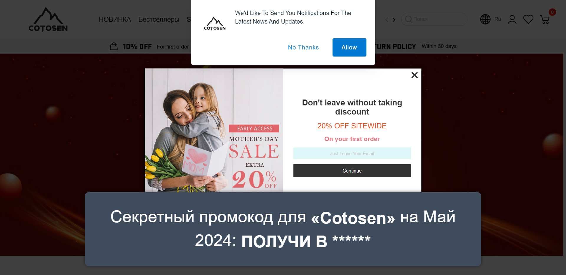 Еще больше выгодных промокодов для «Cotosen» на Май 2024 на Сайте