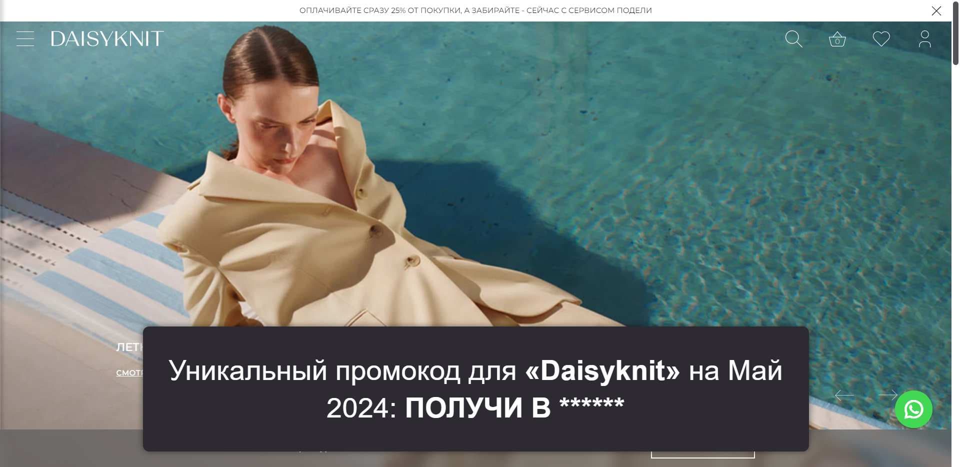 Еще больше секретных промокодов для «Daisyknit» на Май 2024 на Сайте