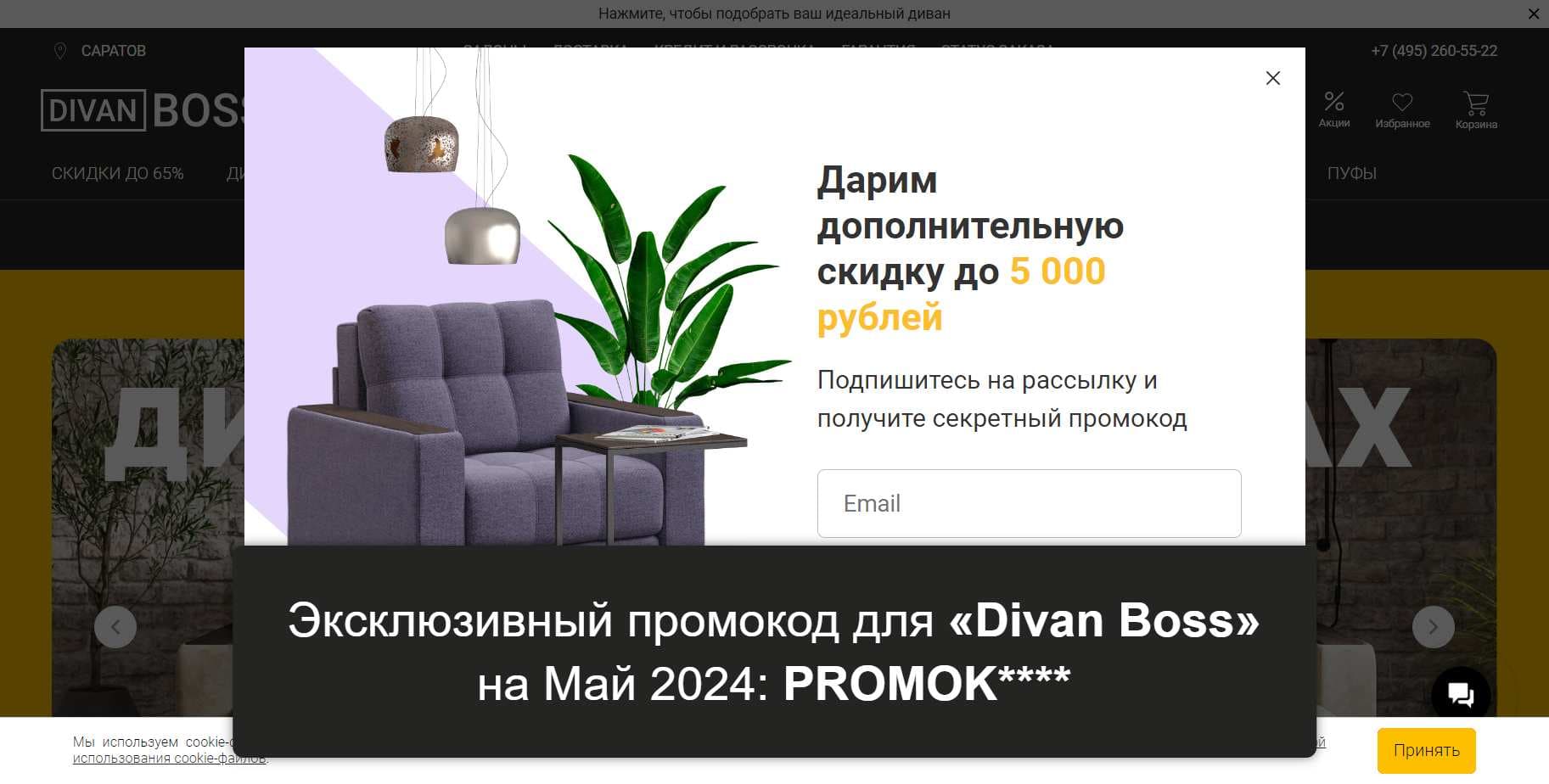 Еще больше уникальных промокодов для «Divan Boss» на Май 2024 на Сайте