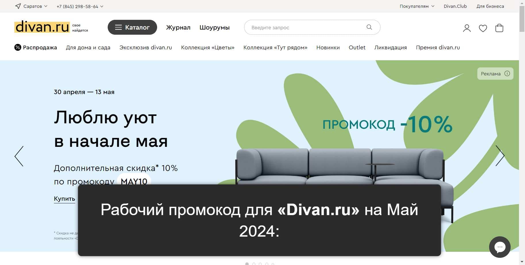 Промокоды «Divan.ru» на Май 2024