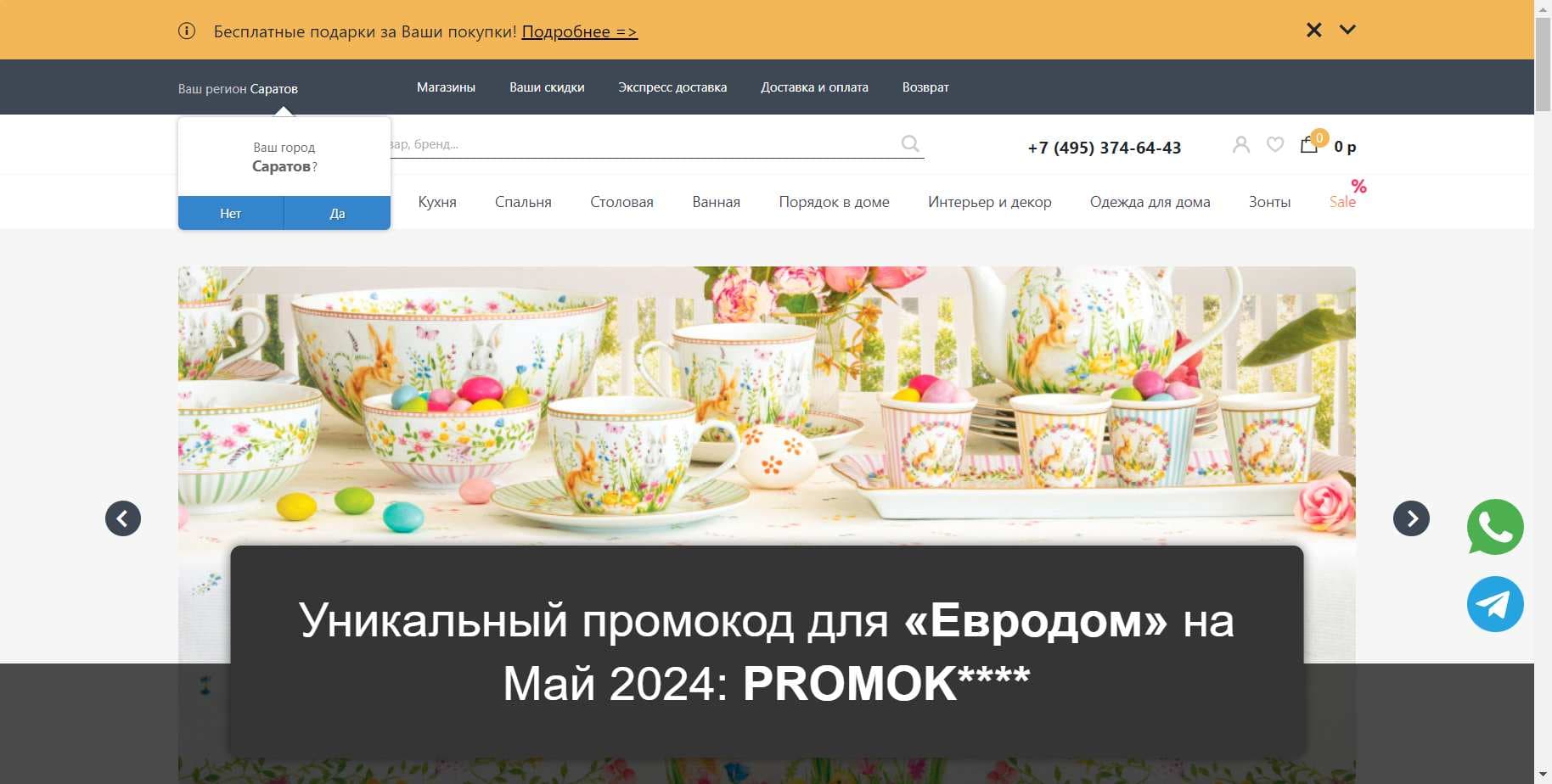 Таким образом, вы успешно воспользуетесь актуальным промокодом из этой статьи и сэкономите на покупке товаров в "Евродоме".