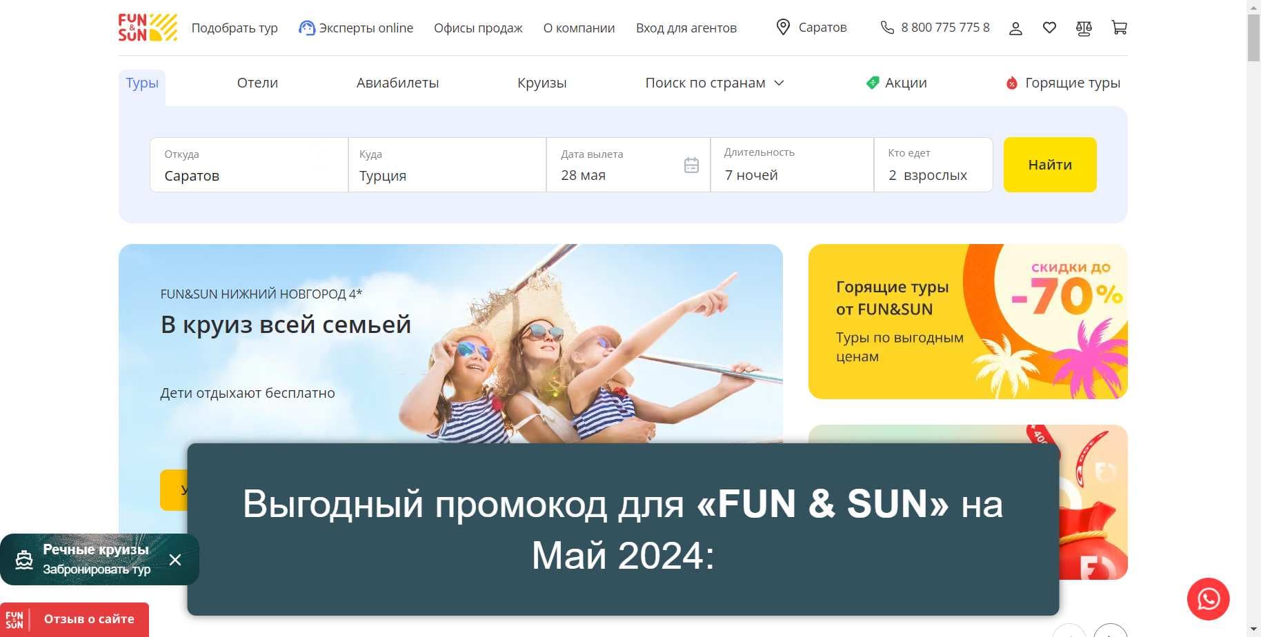 И не забывайте официальный сайт FUN & SUN, где всегда можно найти актуальные промокоды и акции на различные направления и услуги.