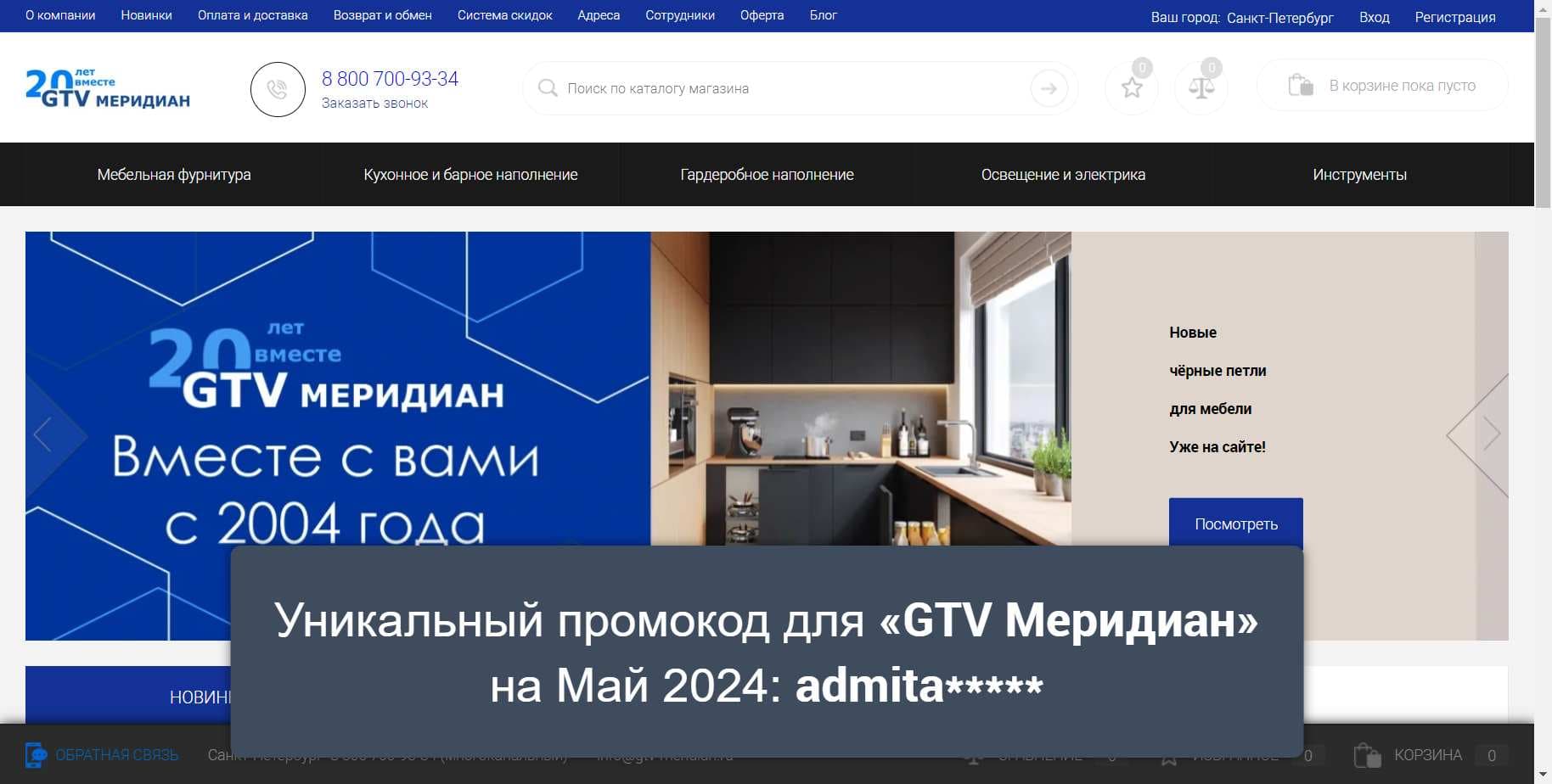 Еще больше специальных промокодов для «GTV Меридиан» на Май 2024 на Сайте