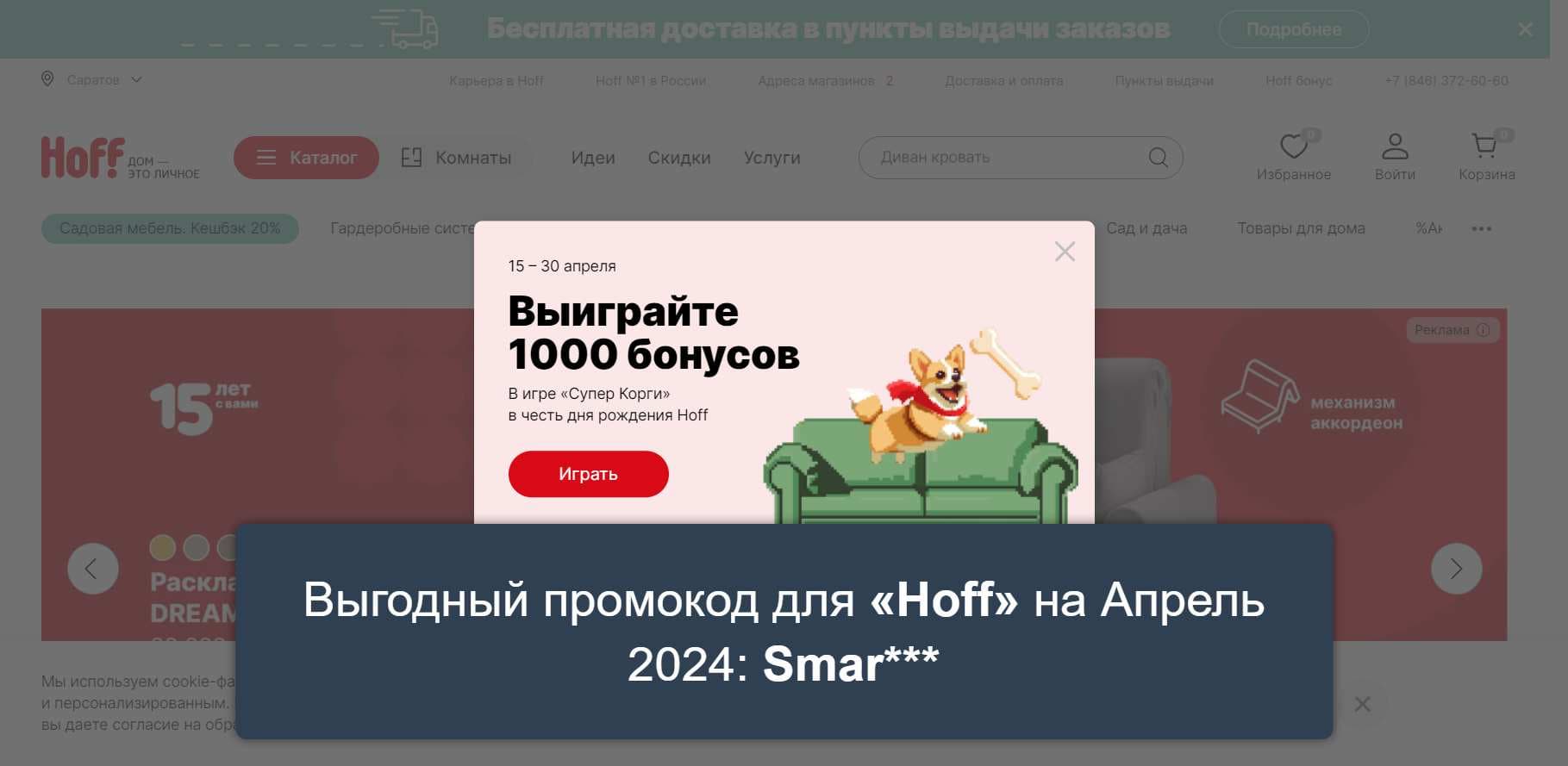 Еще больше специальных промокодов для «Hoff» на Апрель 2024 на Сайте