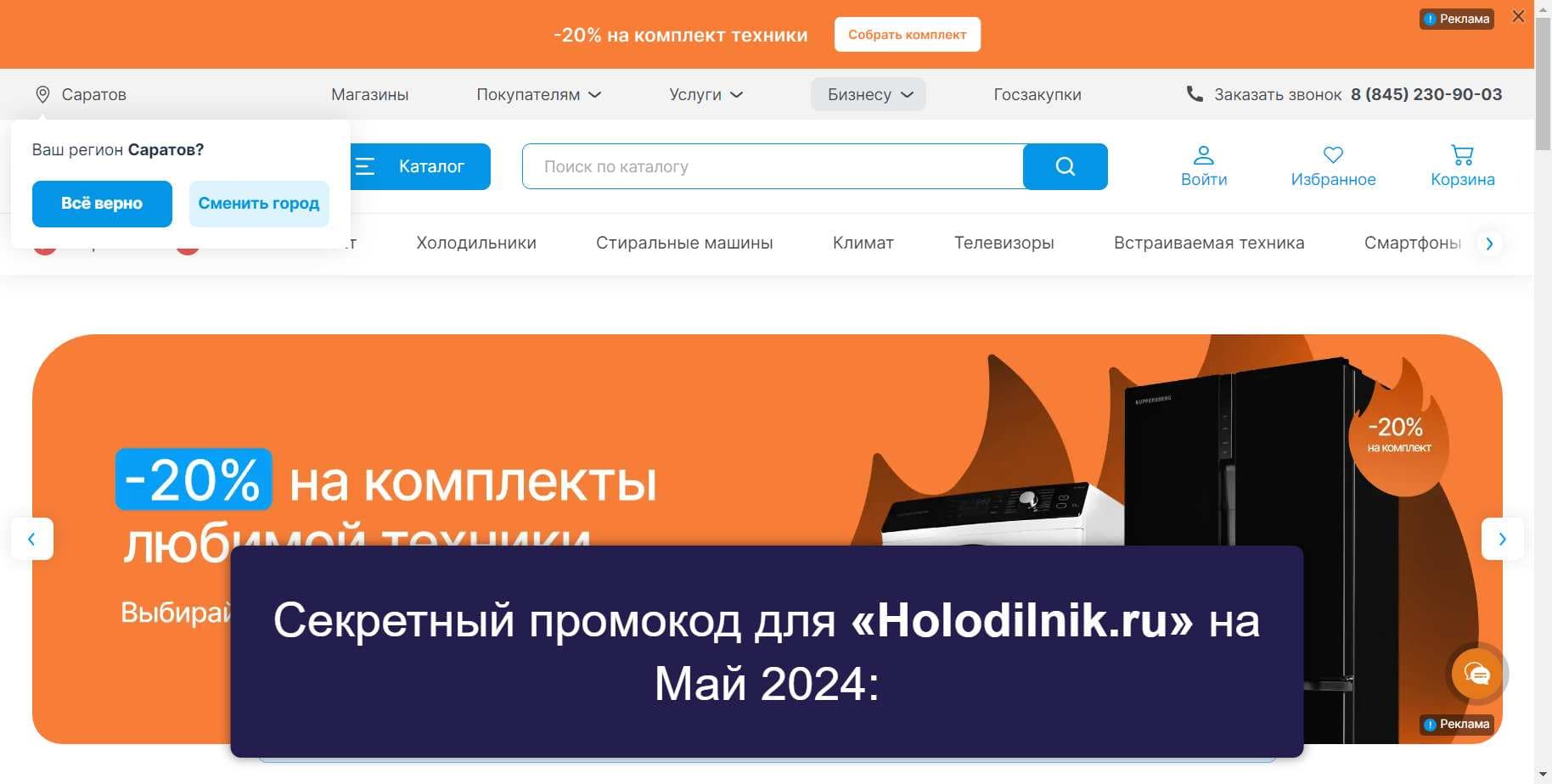 Больше рабочих промокодов для «Holodilnik.ru» на Май 2024 на Сайте