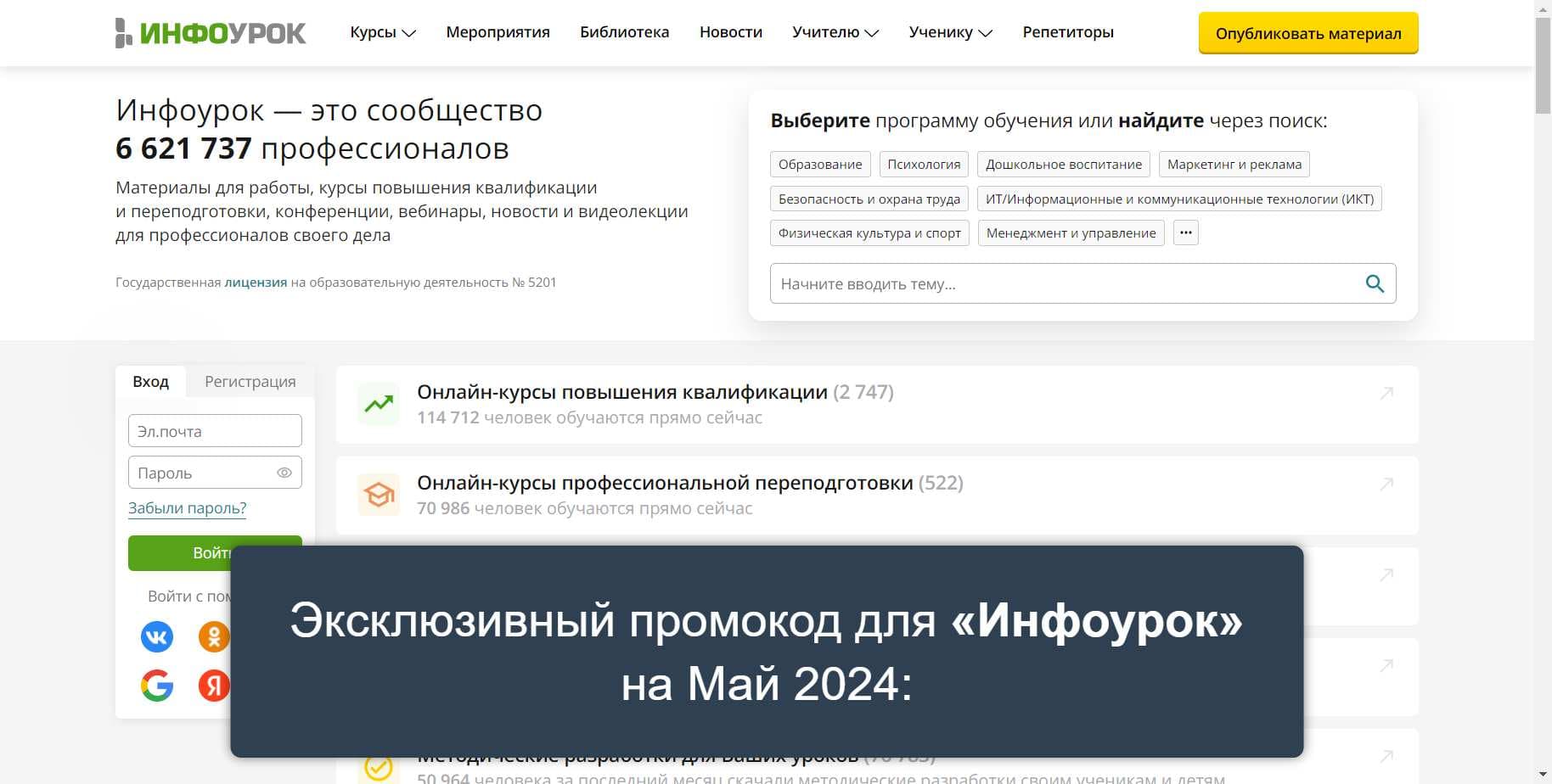 Еще больше специальных промокодов для «Инфоурок» на Май 2024 на Сайте