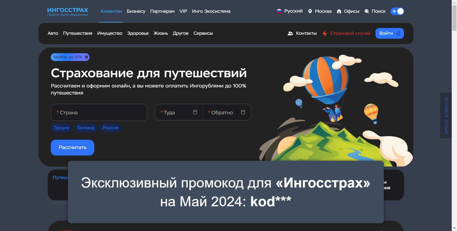 Еще больше специальных промокодов для «Ингосстрах» на Май 2024 на Сайте