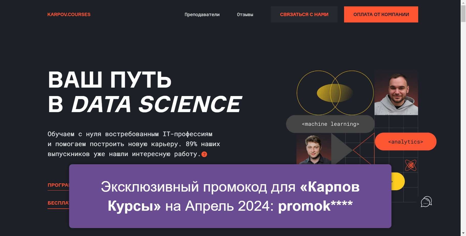 Еще больше специальных промокодов для «Карпов Курсы» на Апрель 2024 на Сайте