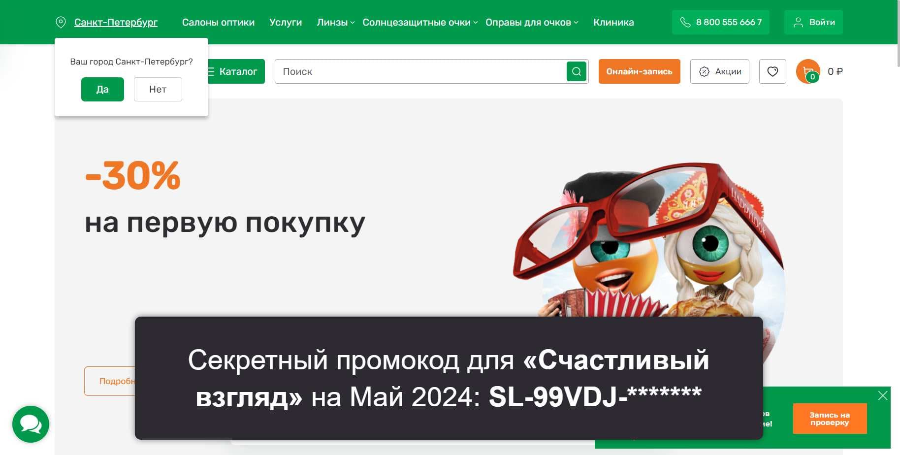 Больше секретных промокодов для «Счастливый взгляд» на Май 2024 на Сайте