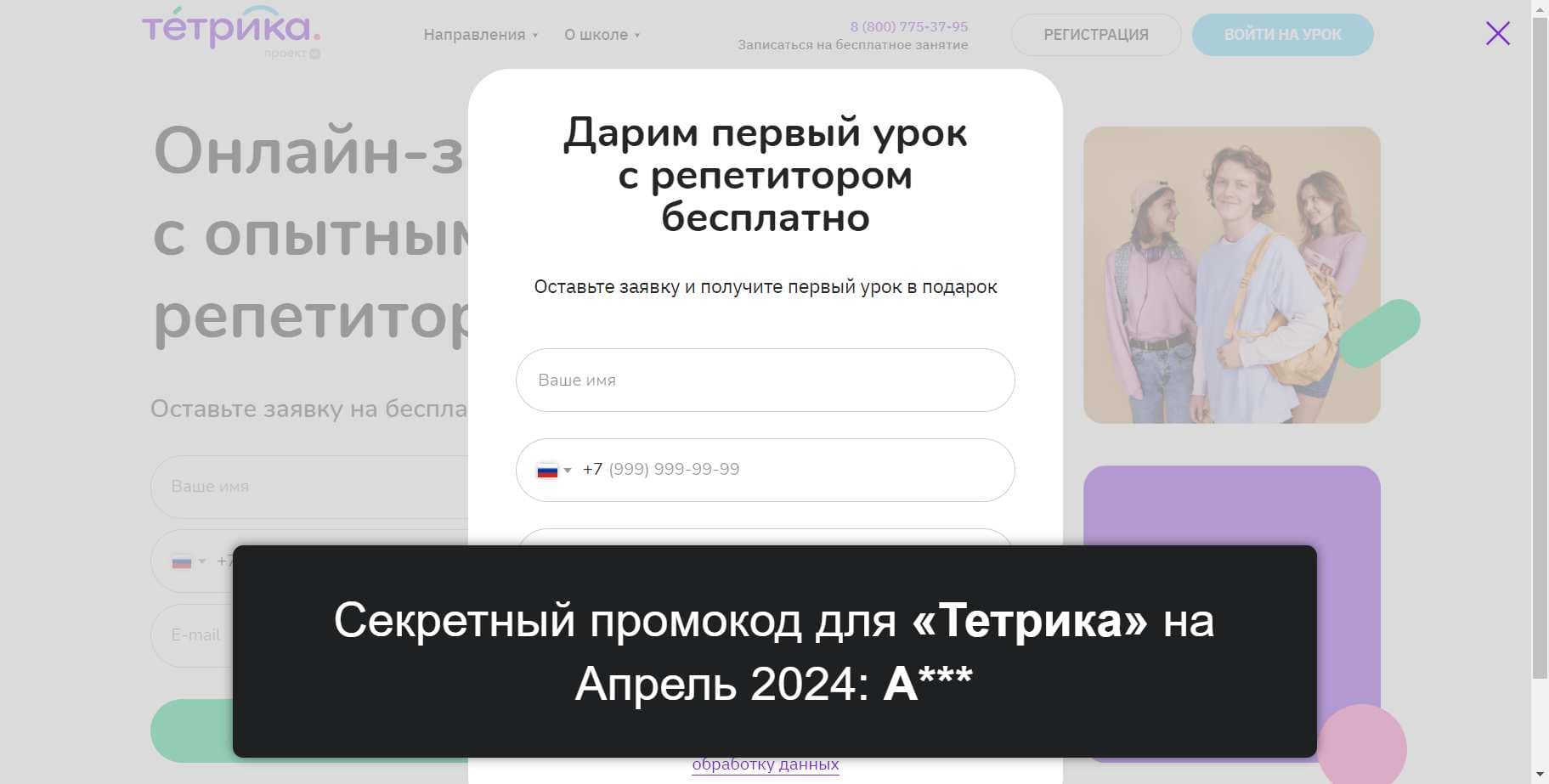 Как совершить оплату в «Тетрика», применив актуальный промокод