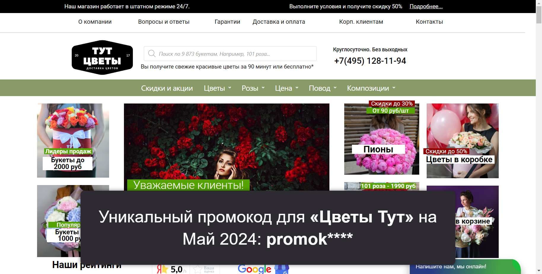 Еще больше секретных промокодов для «Цветы Тут» на Май 2024 на Сайте
