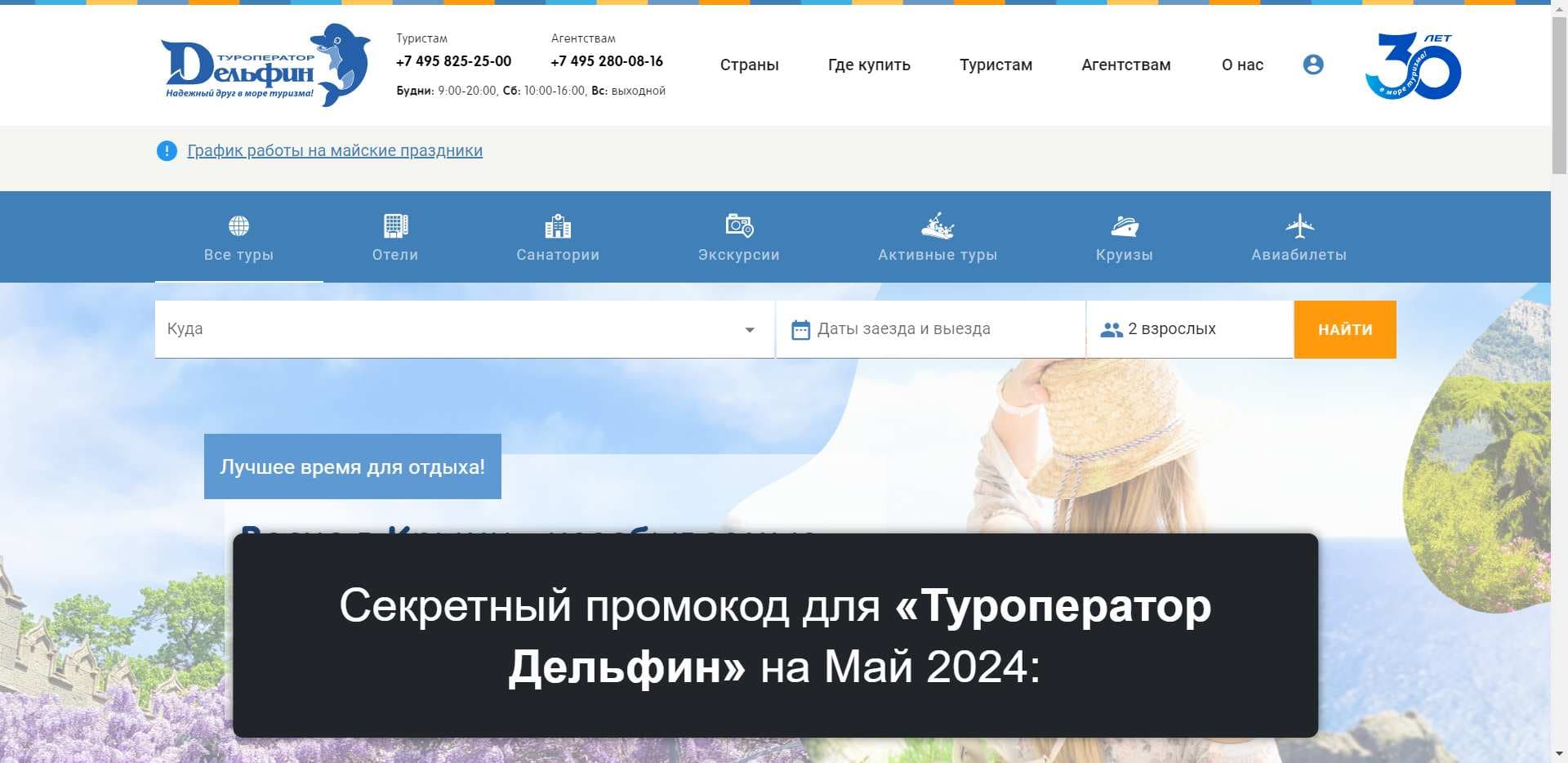 Еще больше рабочих промокодов для «Туроператор Дельфин» на Май 2024 на Сайте