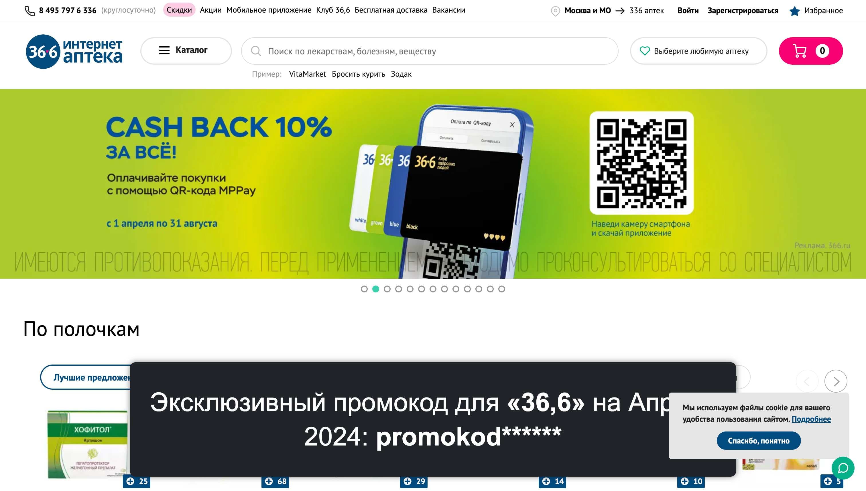 Хотите получить дополнительную скидку при покупке лекарств и товаров для здоровья в "36,6"? Это возможно благодаря секретным промокодам, которые регулярно предоставляются клиентам.